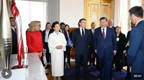 兩(liang) 個(ge) 多月前,國家主席習(xi) 近平在巴黎愛麗(li) 舍宮同法國總統馬克龍舉(ju) 行會(hui) 談。會(hui) 談前,兩(liang) 國元首夫婦互贈禮品。習(xi) 近平主席贈送給馬克龍總統的是北京雙奧火炬,馬克龍總統則以巴黎奧運火炬回贈。習(xi) 近平主席說:“法國是一個(ge) 體(ti) 育強國,我衷心祝願巴黎奧運會(hui) 取得成功。中方將派出高水平代表團赴法參賽。”
