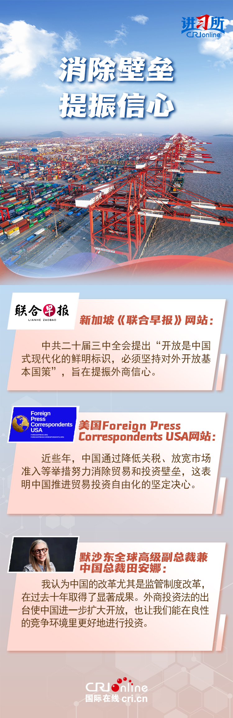 中共二十屆三中全會(hui) 審議通過的《中共中央關(guan) 於(yu) 進一步全麵深化改革、推進中國式現代化的決(jue) 定》強調,必須堅持對外開放基本國策,堅持以開放促改革,建設更高水平開放型經濟新體(ti) 製,並對完善高水平對外開放體(ti) 製機製提出重要改革措施。