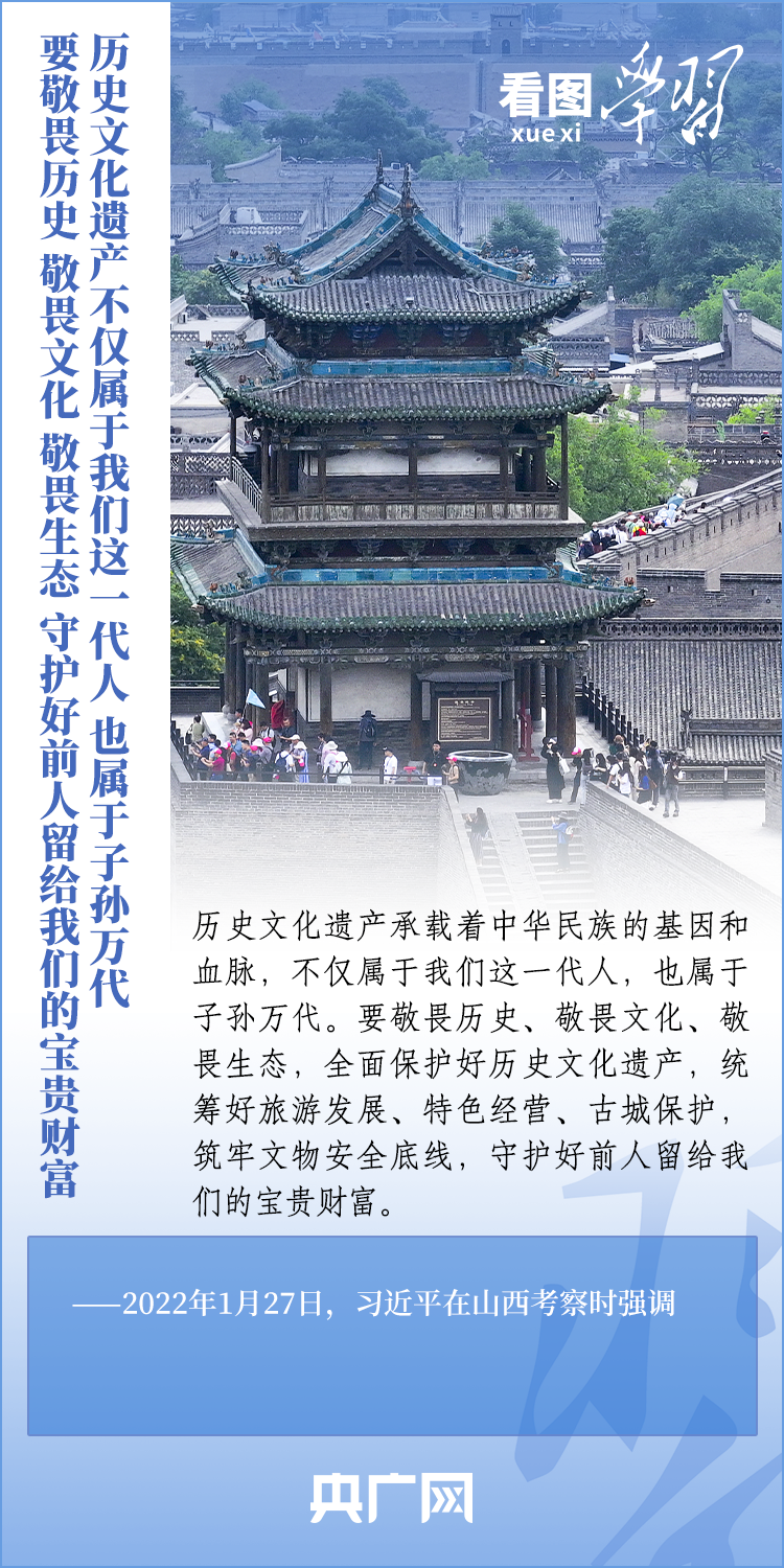 文化遺產(chan) 是中華優(you) 秀傳(chuan) 統文化的重要載體(ti) ,承載著中華民族的基因和血脈。做好曆史文化遺產(chan) 保護傳(chuan) 承工作,習(xi) 近平總書(shu) 記強調,要統籌好旅遊發展、特色經營、古城保護,築牢文物安全底線,守護好前人留給我們(men) 的寶貴財富。