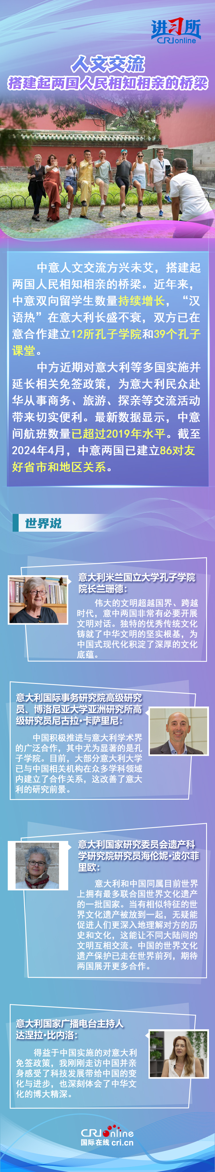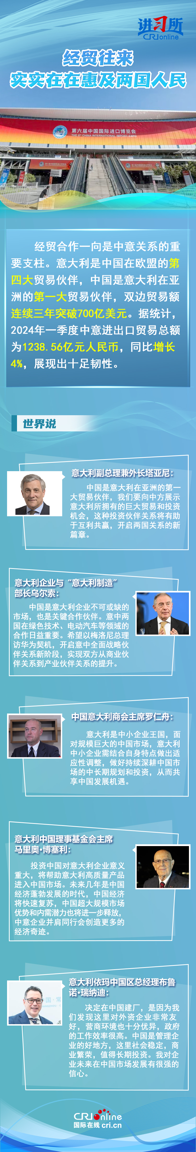 梅洛尼表示,中國對意大利而言是一個(ge) 極為(wei) 重要的經貿和文化合作夥(huo) 伴。意大利各界人士認為(wei) ,中意並肩同行會(hui) 創造更多的經濟奇跡,同時兩(liang) 國非常有必要開展文明對話,期待未來兩(liang) 國展開更多領域合作,開啟全麵戰略夥(huo) 伴關(guan) 係新階段。