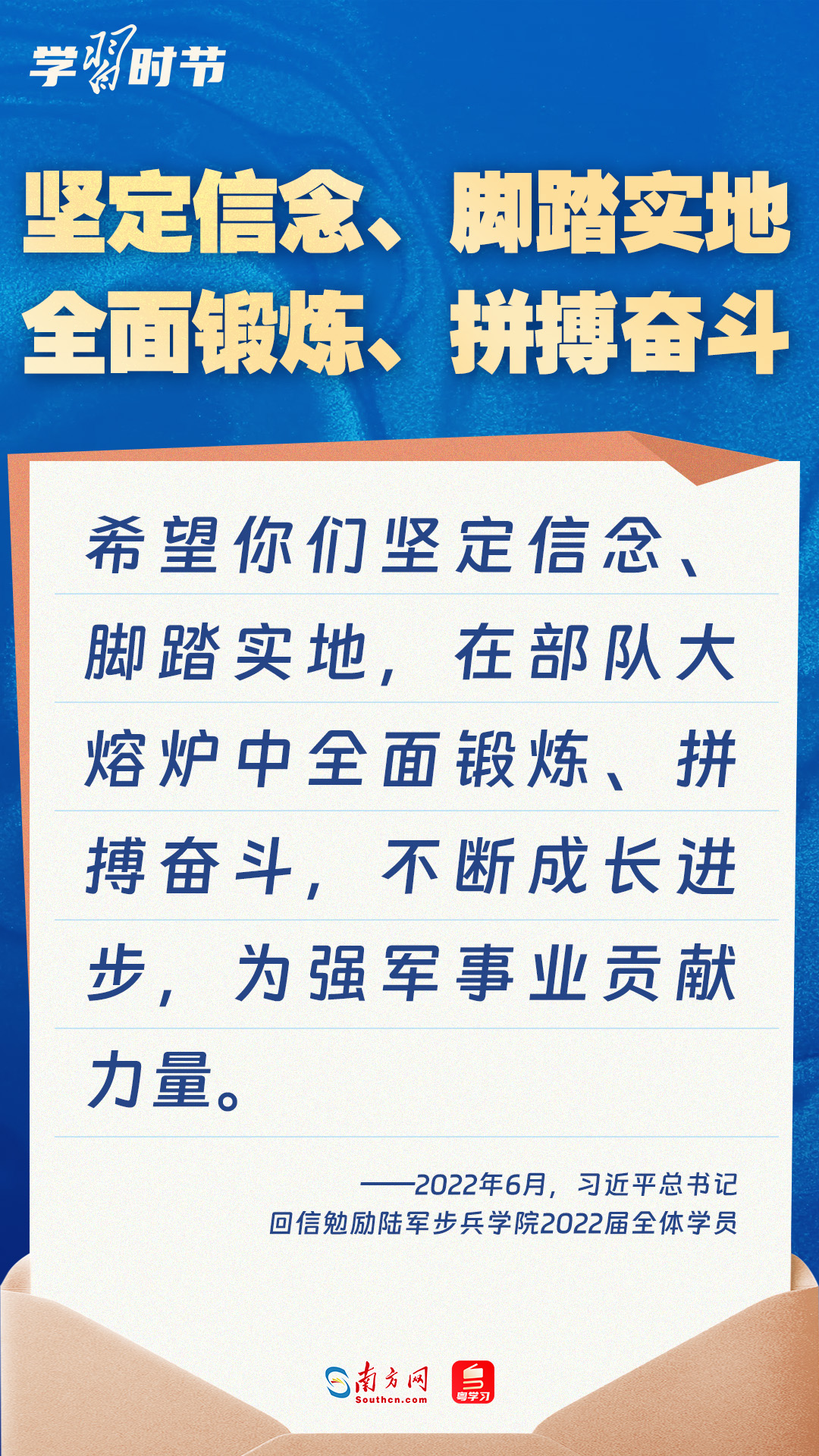 強國必須強軍(jun) ,軍(jun) 強才能國安。黨(dang) 的十八大以來,習(xi) 近平總書(shu) 記始終牽掛一線官兵冷暖,高度重視我軍(jun) 院校教育和人才培養(yang) 工作,多次給部隊官兵、軍(jun) 校學員等回信。讓我們(men) 一起重溫總書(shu) 記的諄諄寄語!