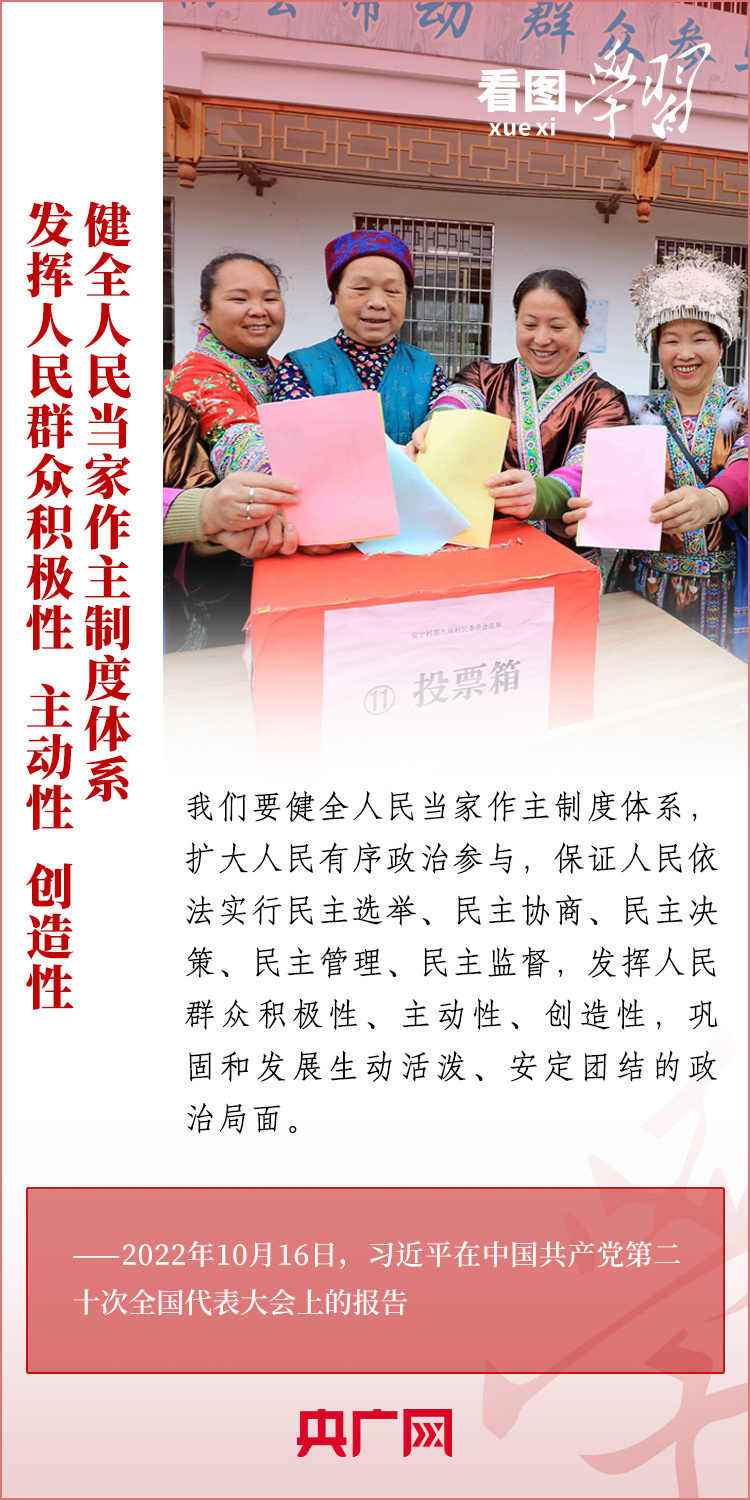 圍繞黨(dang) 的二十屆三中全會(hui) 明確提出的“七個(ge) 聚焦”改革方向,《看圖學習(xi) 》“改革為(wei) 人民”係列為(wei) 您梳理總書(shu) 記相關(guan) 重要論述。本期推出“聚焦發展全過程人民民主”,一起來學習(xi) !