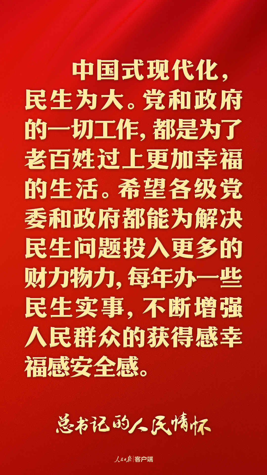 “希望各級黨(dang) 委和政府都能為(wei) 解決(jue) 民生問題投入更多的財力物力,每年辦一些民生實事,不斷增強人民群眾(zhong) 的獲得感幸福感安全感。”習(xi) 近平總書(shu) 記明確要求。