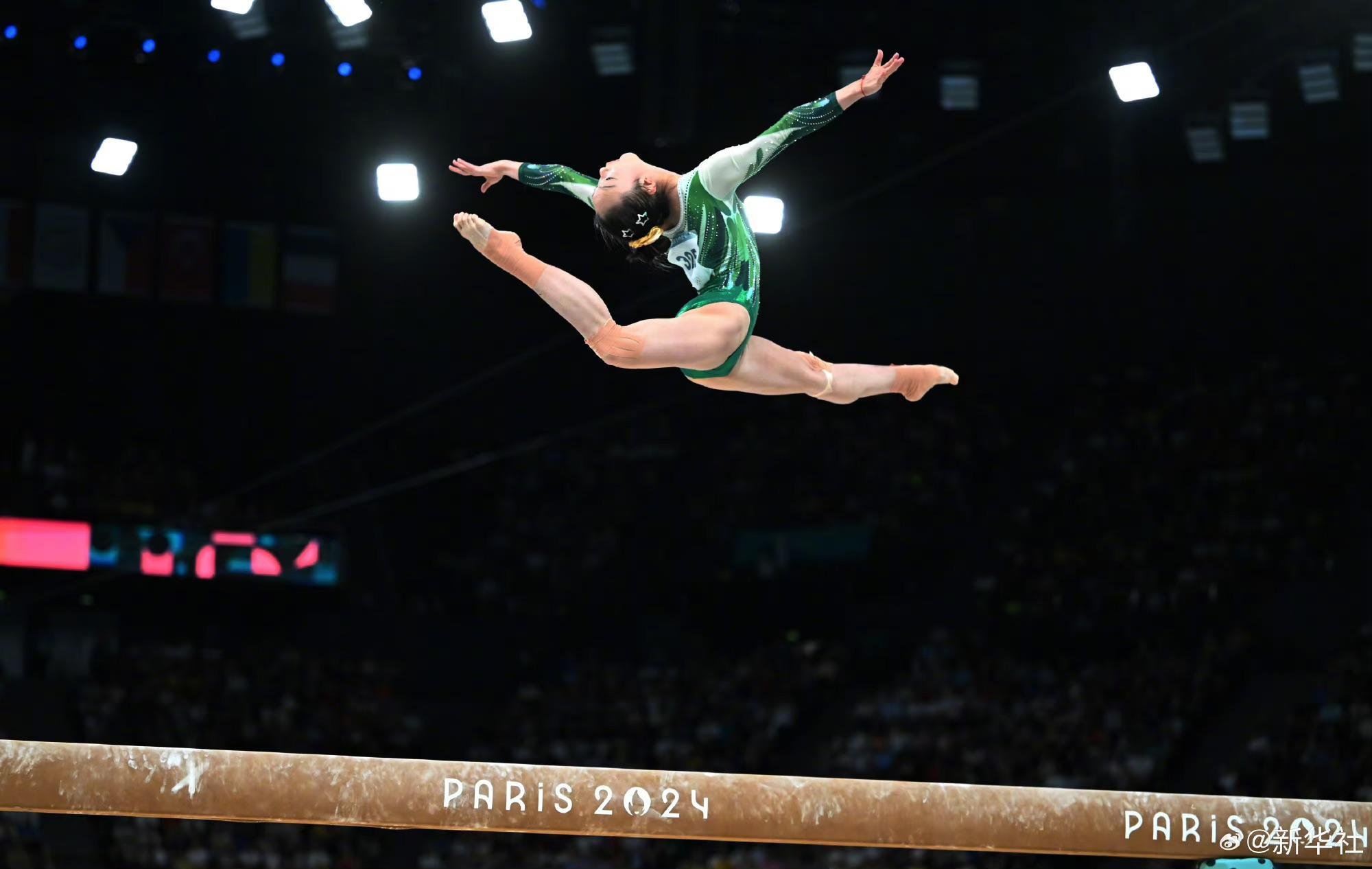 巴黎奧運會(hui) 體(ti) 操女子平衡木比賽中,中國選手周雅琴的靚麗(li) 身姿