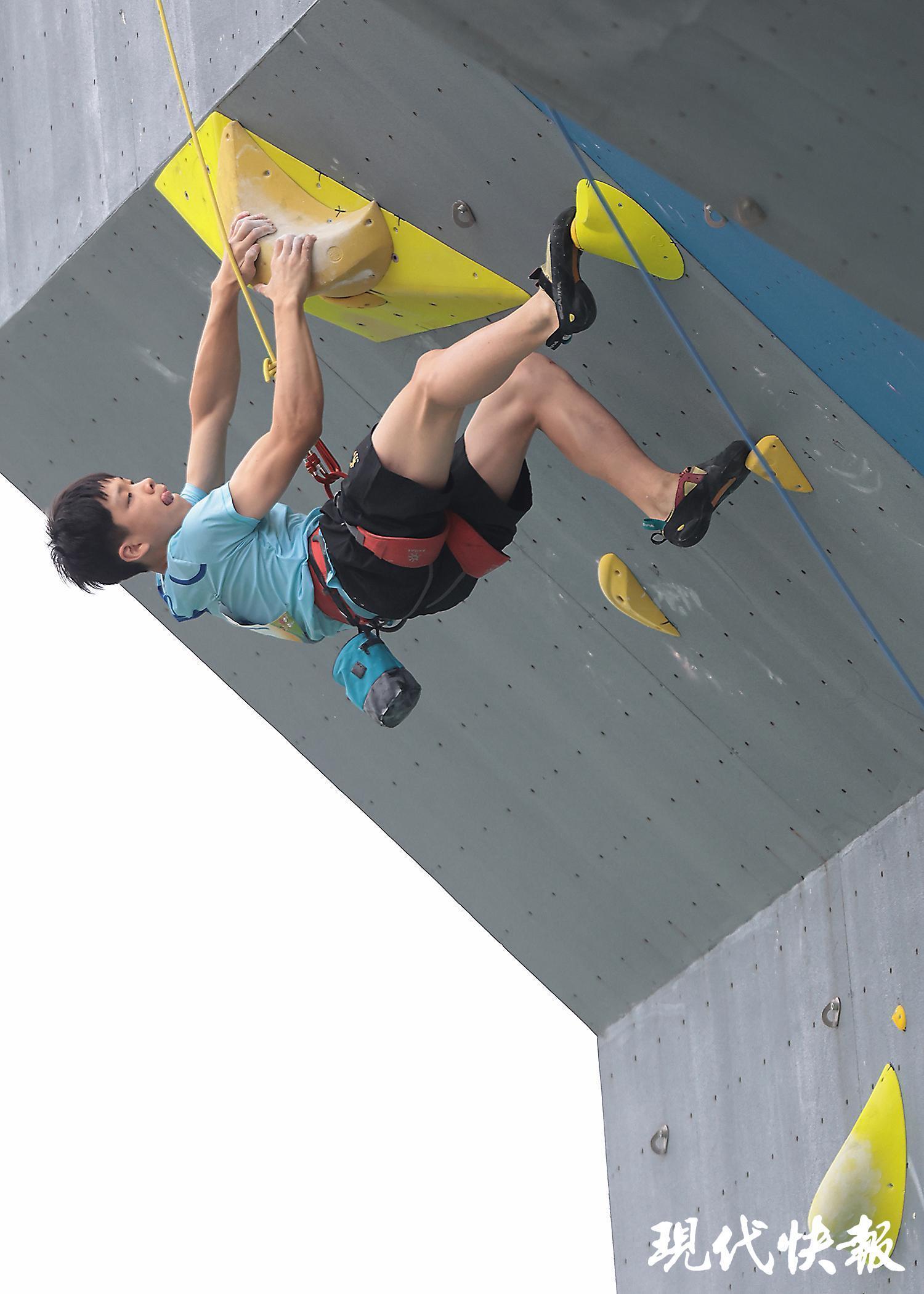 趙一程在江蘇省運會(hui) 攀岩比賽上“飛簷走壁”