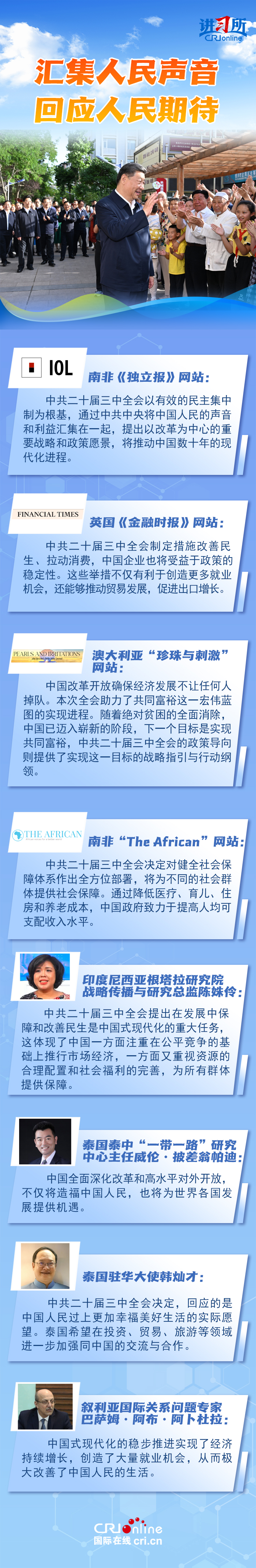 人民立場是中國共產(chan) 黨(dang) 的根本立場,它向世界展現了中國以人民為(wei) 中心推進改革的堅定決(jue) 心和力量。國際社會(hui) 認為(wei) ,中國這場全麵深化改革,不僅(jin) 將造福中國人民,也將為(wei) 世界各國發展提供機遇。