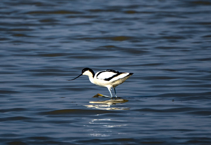 一隻反嘴鷸在天津七裏海濕地自然保護區內(nei) 休憩覓食。新華社記者 孫凡越 攝