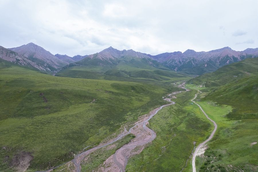 2024年7月10日在甘肅省張掖市肅南裕固族自治縣皇城鎮拍攝的祁連山景色(無人機照片)。新華社記者 郎兵兵 攝