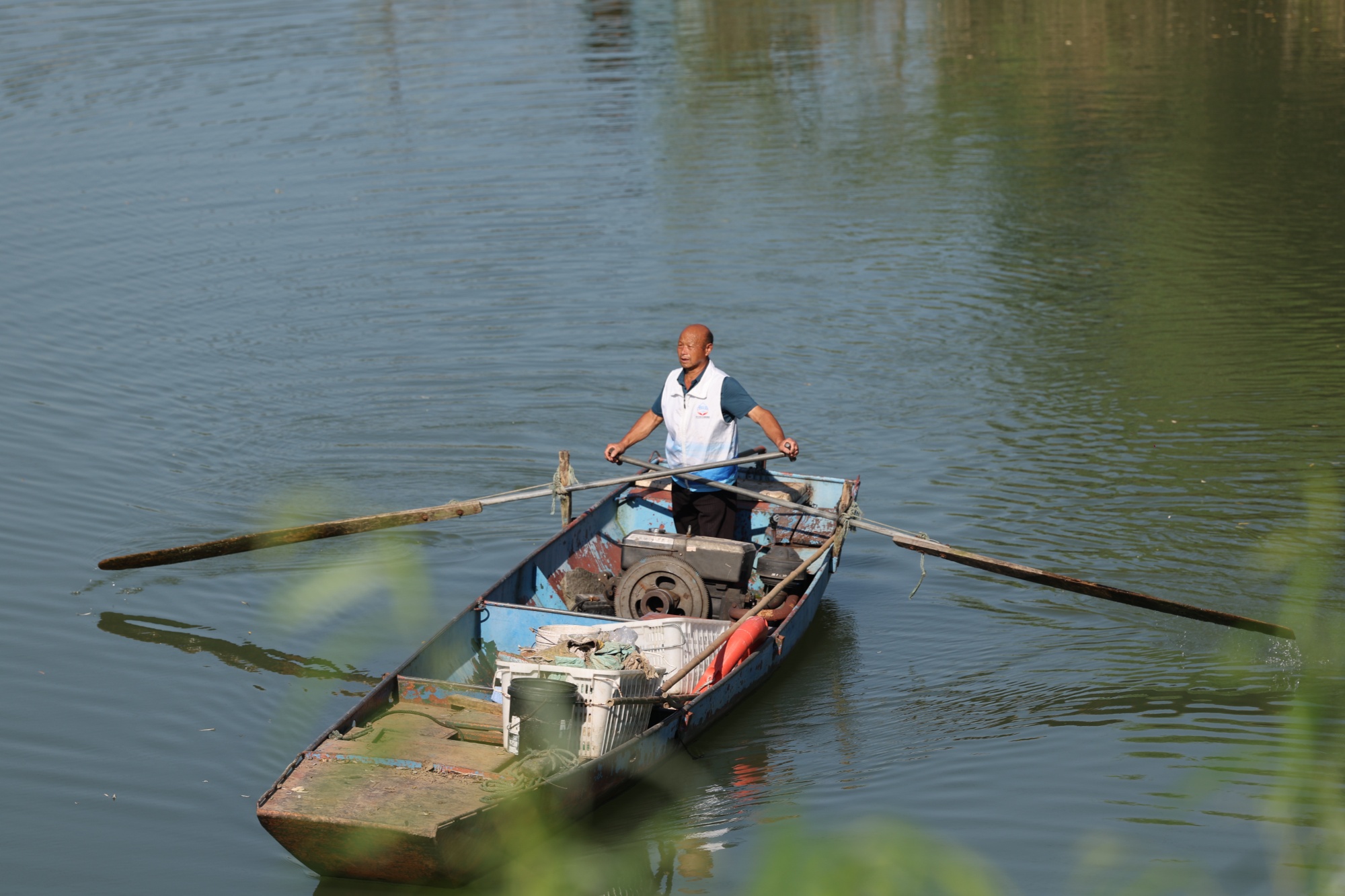 2020年,長江流域重點水域“十年禁漁”全麵啟動,老蔣積極響應,主動上交跟了自己半輩子的9條漁船。後來,為(wei) 了發揮他熟悉水域、水性好的特長,當地政府為(wei) 他配置了一條“守井衛士”船,用於(yu) 巡江清漂和水上救援。