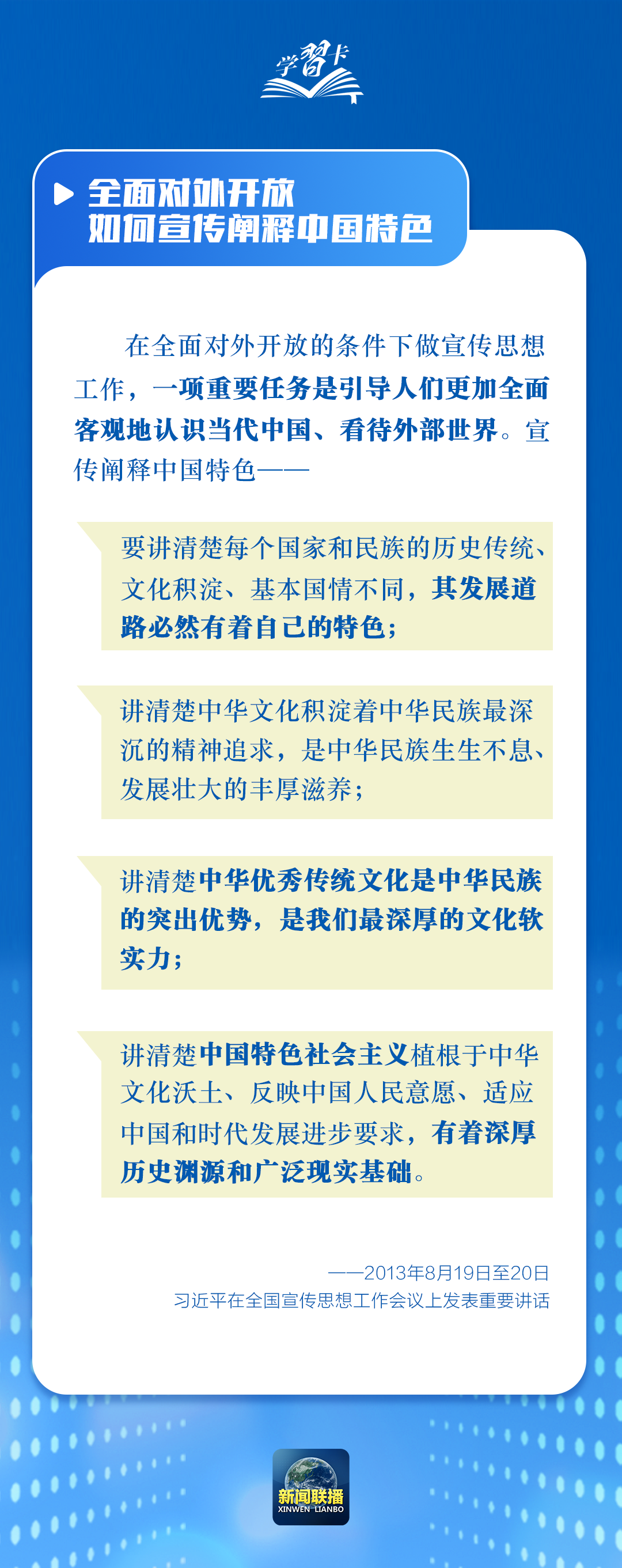 習(xi) 近平總書(shu) 記高度重視國際傳(chuan) 播能力建設,指出當前外宣工作處於(yu) 曆史最好時期,同時也麵臨(lin) 最大壓力,強調要全麵加強和改進國際傳(chuan) 播工作,深化文明交流互鑒,形成同我國綜合國力和國際地位相匹配的國際話語權,增強中華文明傳(chuan) 播力影響力。一起學習(xi) ↓
