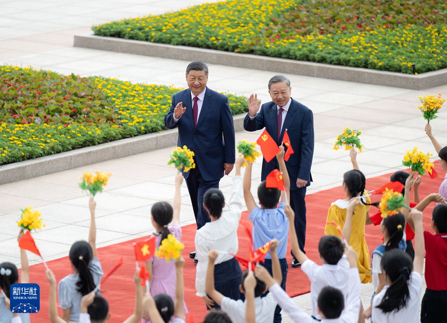 8月19日,中共中央總書(shu) 記、國家主席習(xi) 近平在北京人民大會(hui) 堂同來華進行國事訪問的越共中央總書(shu) 記、國家主席蘇林舉(ju) 行會(hui) 談。這是會(hui) 談前,習(xi) 近平在人民大會(hui) 堂東(dong) 門外廣場為(wei) 蘇林舉(ju) 行歡迎儀(yi) 式。新華社記者 姚大偉(wei) 攝
