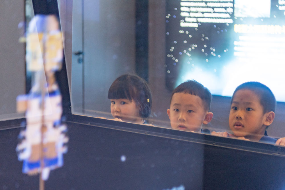 2024年4月24日,小朋友在哈爾濱工業(ye) 大學航天館內(nei) 參觀。航天館是哈爾濱工業(ye) 大學重要的教學基地,也是向社會(hui) 公眾(zhong) 開展航天國防教育、弘揚航天精神的重要場所,被授予首批全國科普教育基地、首批國家航天局航天科普教育基地、全國中小學生研學實踐教育基地等。