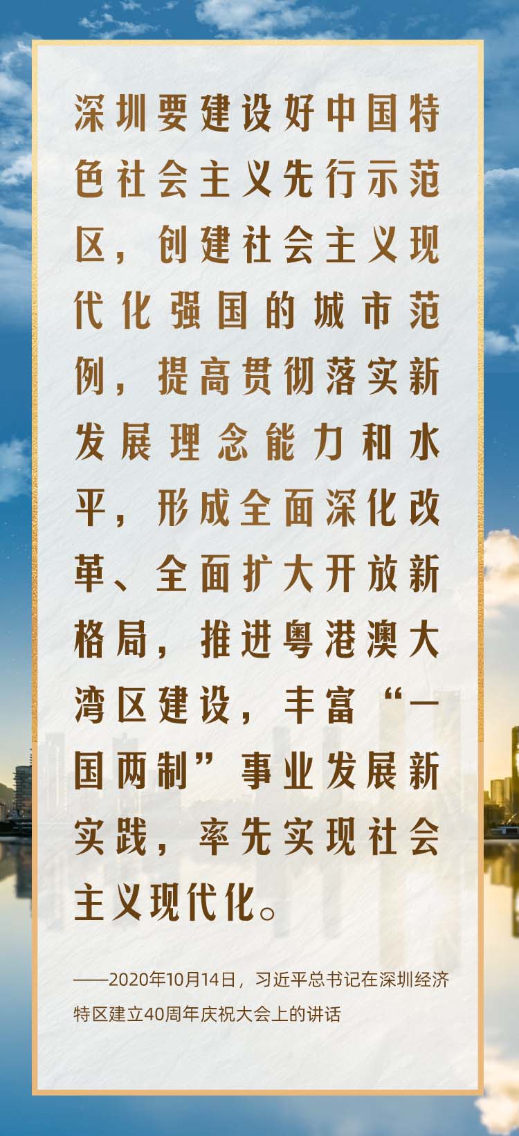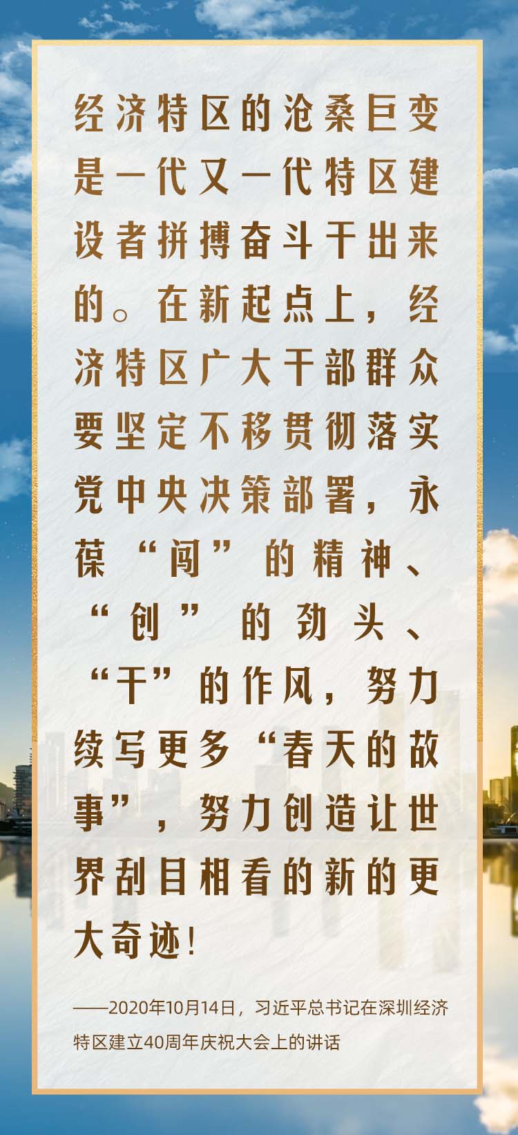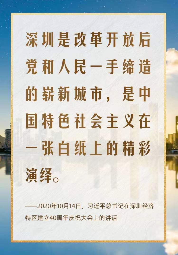 2020年10月,在慶祝深圳經濟特區建立40周年之際,習(xi) 近平總書(shu) 記又一次來到這裏,出席慶祝大會(hui) ,強調改革不停頓、開放不止步,在更高起點上推進改革開放,推動經濟特區工作開創新局麵。