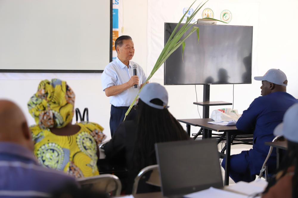 8月4日,在盧旺達南方省胡耶區,林占熺為(wei) 非洲地區菌草技術培訓班授課。新華社發(黃萬(wan) 晴攝)