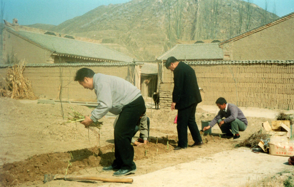 1997年4月,林占熺(左一)帶領科研團隊首次在寧夏彭陽縣試種菌草。新華社發