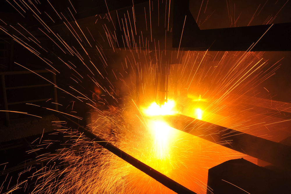 2015年3月10日,東(dong) 北特鋼集團大連基地生產(chan) 的合金鋼連鑄坯進行定尺切割。新華社發
