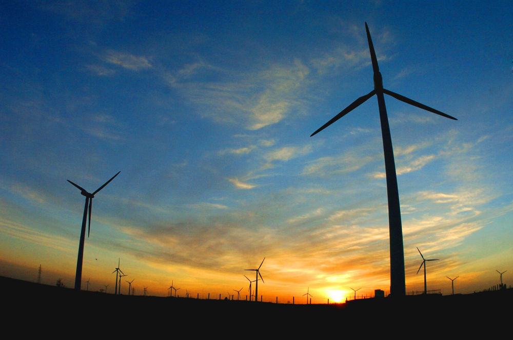 2005年,吉林省白城市通榆縣境內(nei) 幾十部風力發電機組在工作。新華社發