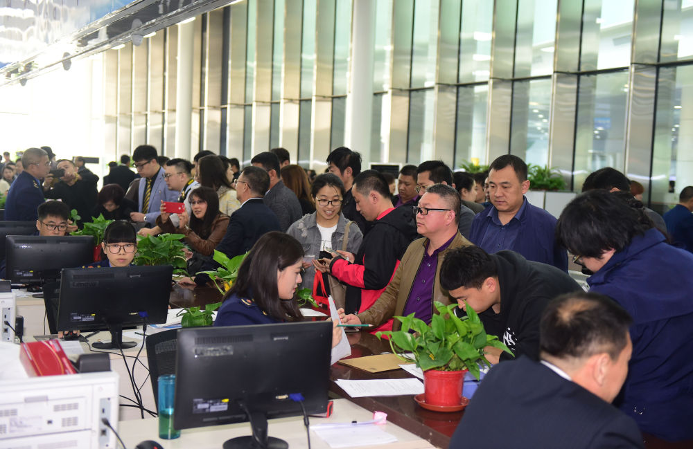 2017年4月10日,中國(遼寧)自由貿易試驗區沈陽片區揭牌當日,眾(zhong) 多企業(ye) 谘詢注冊(ce) 。新華社記者楊青 攝