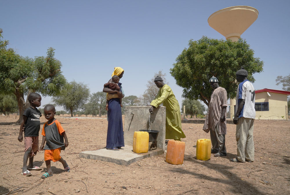 2023年3月20日,在塞內(nei) 加爾久爾貝勒區的泰內(nei) 富勒村,村民將取到的水運回家。新華社記者 王子正 攝