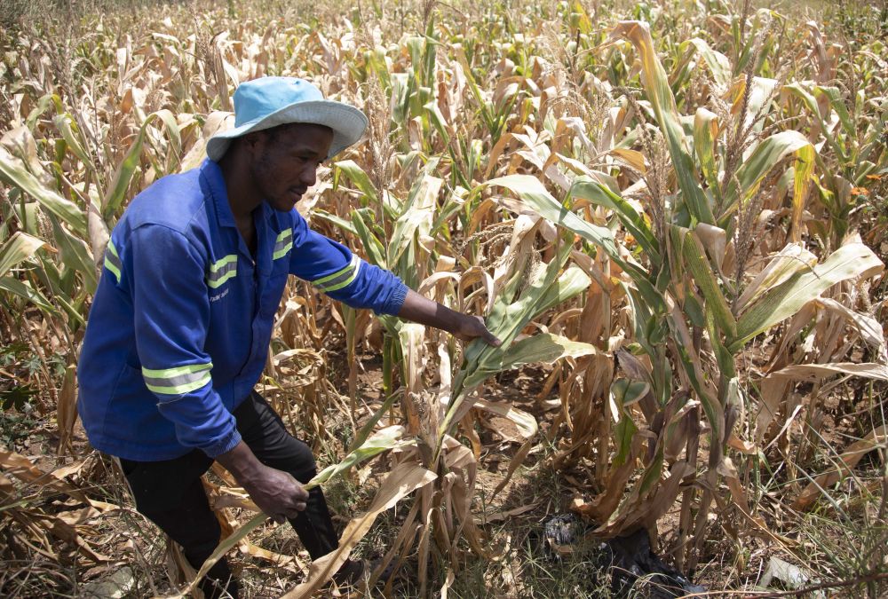 4月3日,農(nong) 民在津巴布韋首都哈拉雷近郊的一塊玉米地檢查作物長勢。新華社發