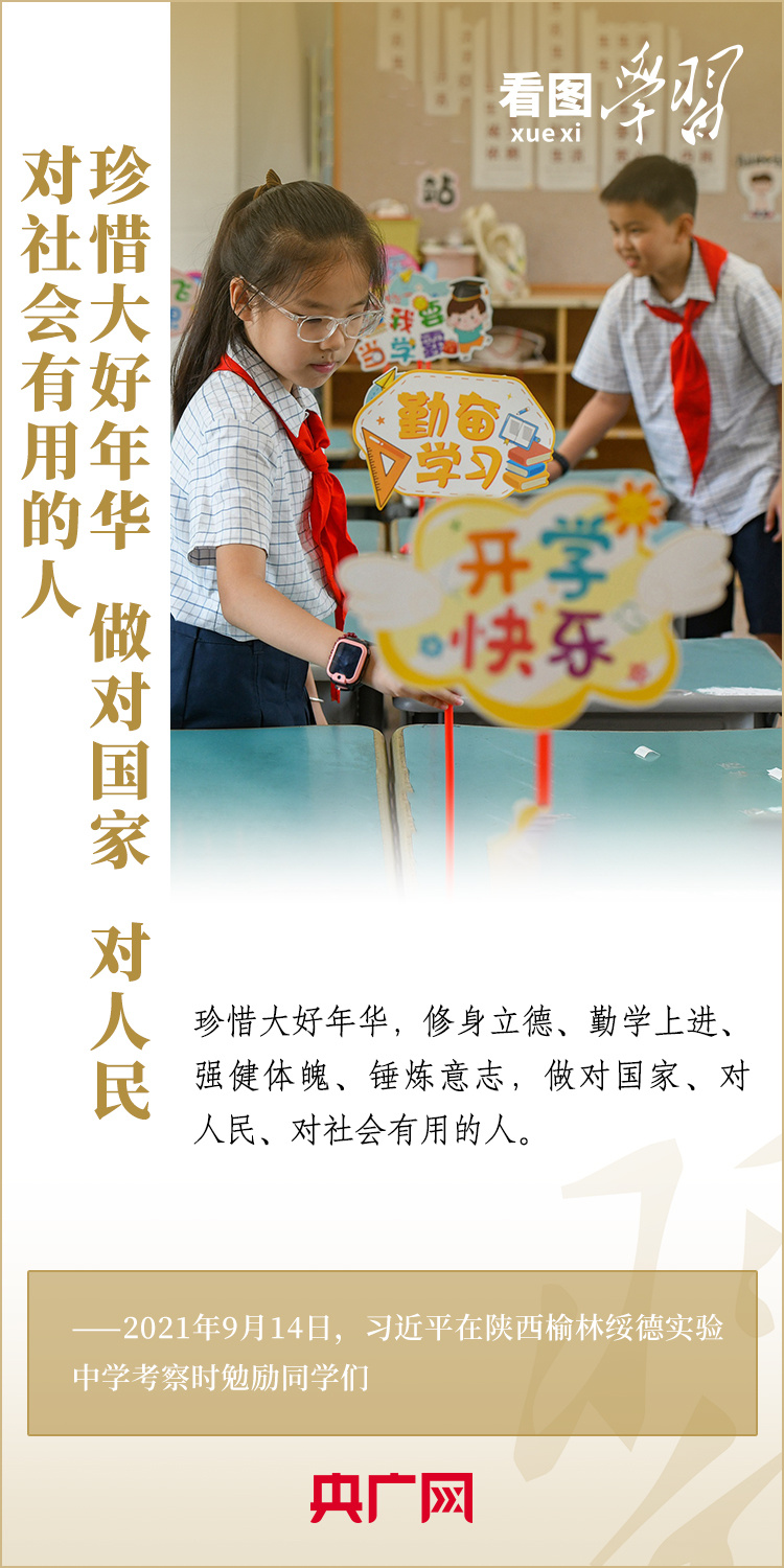 “少年兒(er) 童是祖國的未來。”一直以來,習(xi) 近平總書(shu) 記高度重視和關(guan) 心青少年的健康成長。每每走到校園和學生們(men) 中間,總書(shu) 記總會(hui) 與(yu) 他們(men) 談學習(xi) 、談理想、談成長,鼓勵他們(men) 努力為(wei) 自己贏得人生出彩的機會(hui) ,做對國家、對人民、對社會(hui) 有用的人。又是一年開學季,讓我們(men) 一起重溫總書(shu) 記對莘莘學子的殷切期望。一起來學習(xi) !