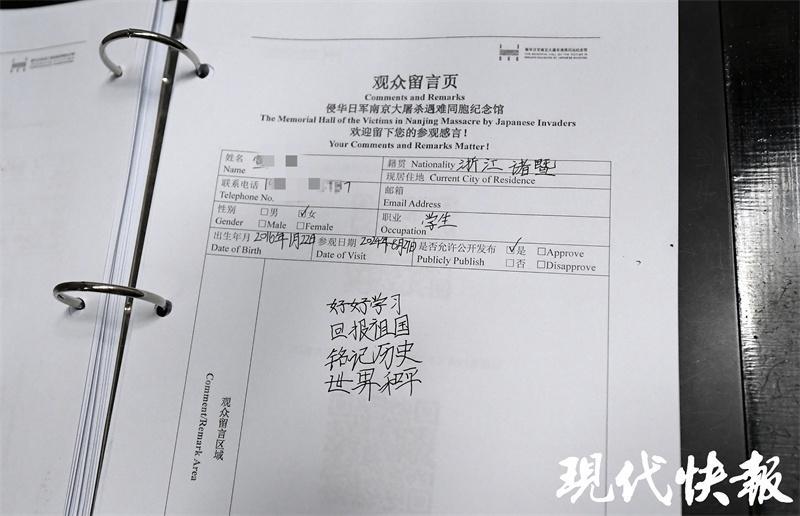 “好好學習(xi) ,回報祖國”“吾輩當自強”“振興(xing) 中華,責任在我們(men) 這一代”……暑假進入尾聲,侵華日軍(jun) 南京大屠殺遇難同胞紀念館觀眾(zhong) 隊伍裏,孩子們(men) 的身影依舊不少。在紀念館留言簿上,他們(men) 用稚嫩的筆跡留下一句句和平心聲。