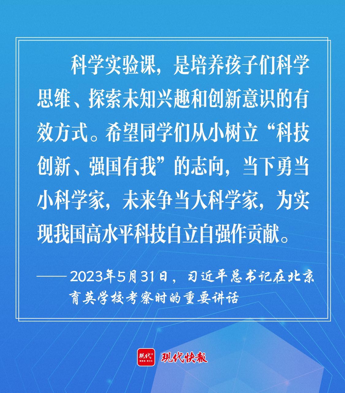 2023年5月,習(xi) 近平總書(shu) 記在北京育英學校考察時強調,希望同學們(men) 從(cong) 小樹立“科技創新、強國有我”的誌向,當下勇當小科學家,未來爭(zheng) 當大科學家,為(wei) 實現我國高水平科技自立自強作貢獻。