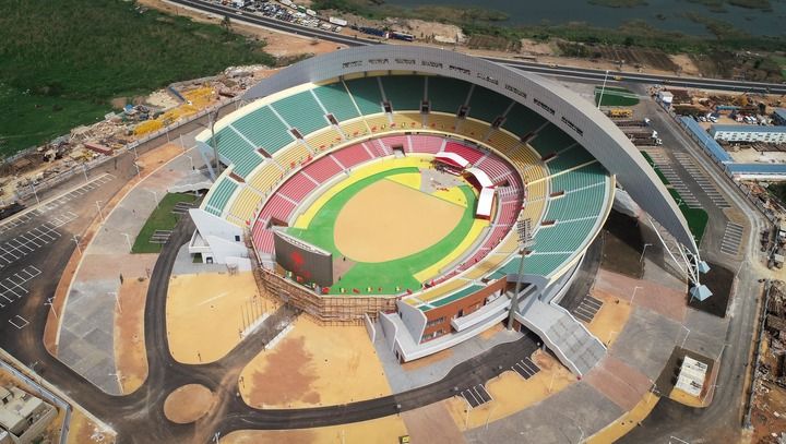 這是2018年7月18日在塞內(nei) 加爾首都達喀爾航拍的中國援建的塞內(nei) 加爾競技摔跤場。新華社記者 呂帥 攝