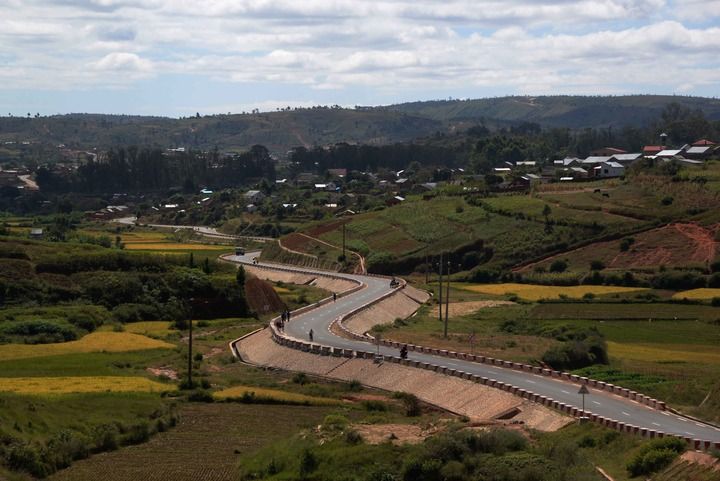 這是2022年5月3日在馬達加斯加首都塔那那利佛郊區拍攝的由中國政府無償(chang) 援建的“雞蛋路”。 新華社發(西塔卡·拉喬(qiao) 納裏鬆 攝)