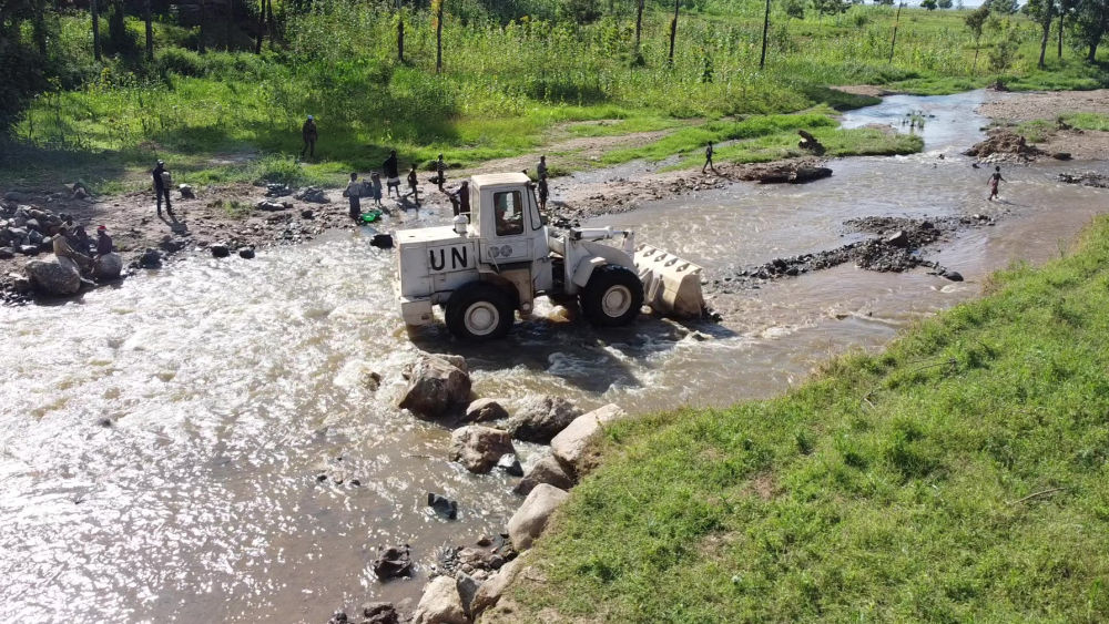 2023年6月7日,在剛果(金)南基伍省卡萊亥地區,中國第26批赴剛果(金)維和工兵分隊官兵進行施工作業(ye) 。