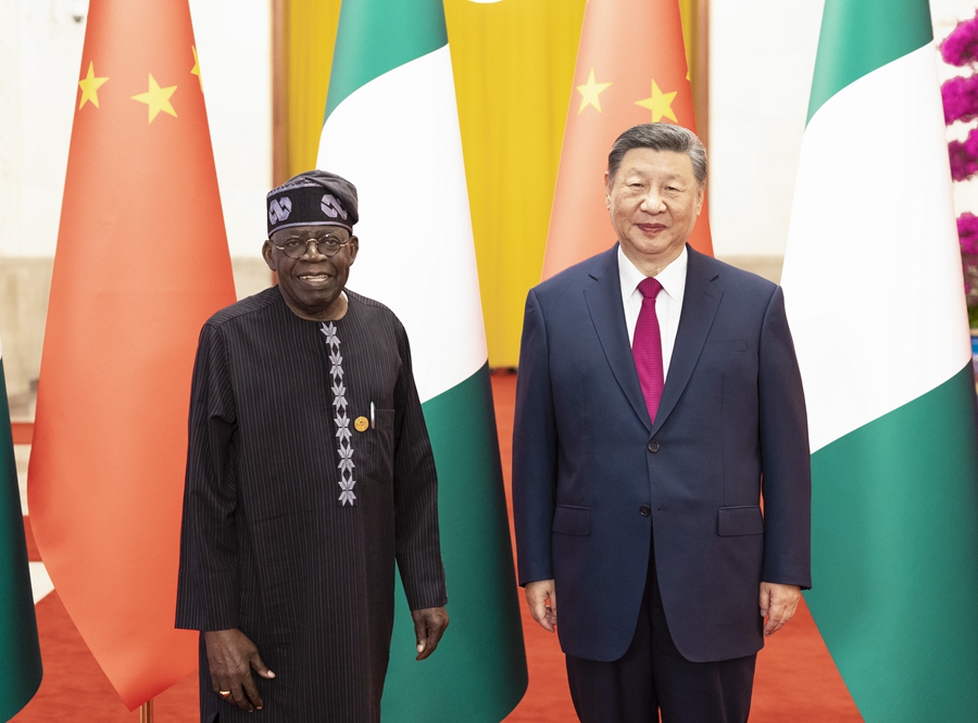 9月3日下午,國家主席習(xi) 近平在北京人民大會(hui) 堂同來華出席中非合作論壇北京峰會(hui) 並進行國事訪問的尼日利亞(ya) 總統提努布舉(ju) 行會(hui) 談。新華社記者 黃敬文 攝
