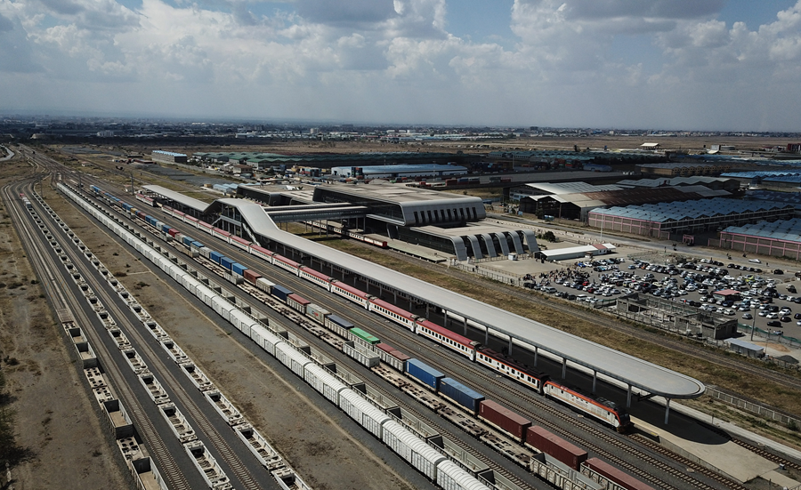 這是2023年9月20日在肯尼亞(ya) 首都內(nei) 羅畢拍攝的蒙內(nei) 鐵路內(nei) 羅畢站(無人機照片)。新華社記者 韓旭 攝