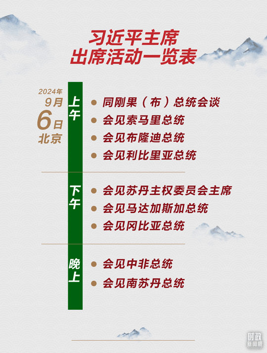6日,“大國會(hui) 客廳”依舊高朋滿座。人民大會(hui) 堂東(dong) 大廳,習(xi) 近平主席先後與(yu) 9位非洲國家領導人會(hui) 談會(hui) 見。