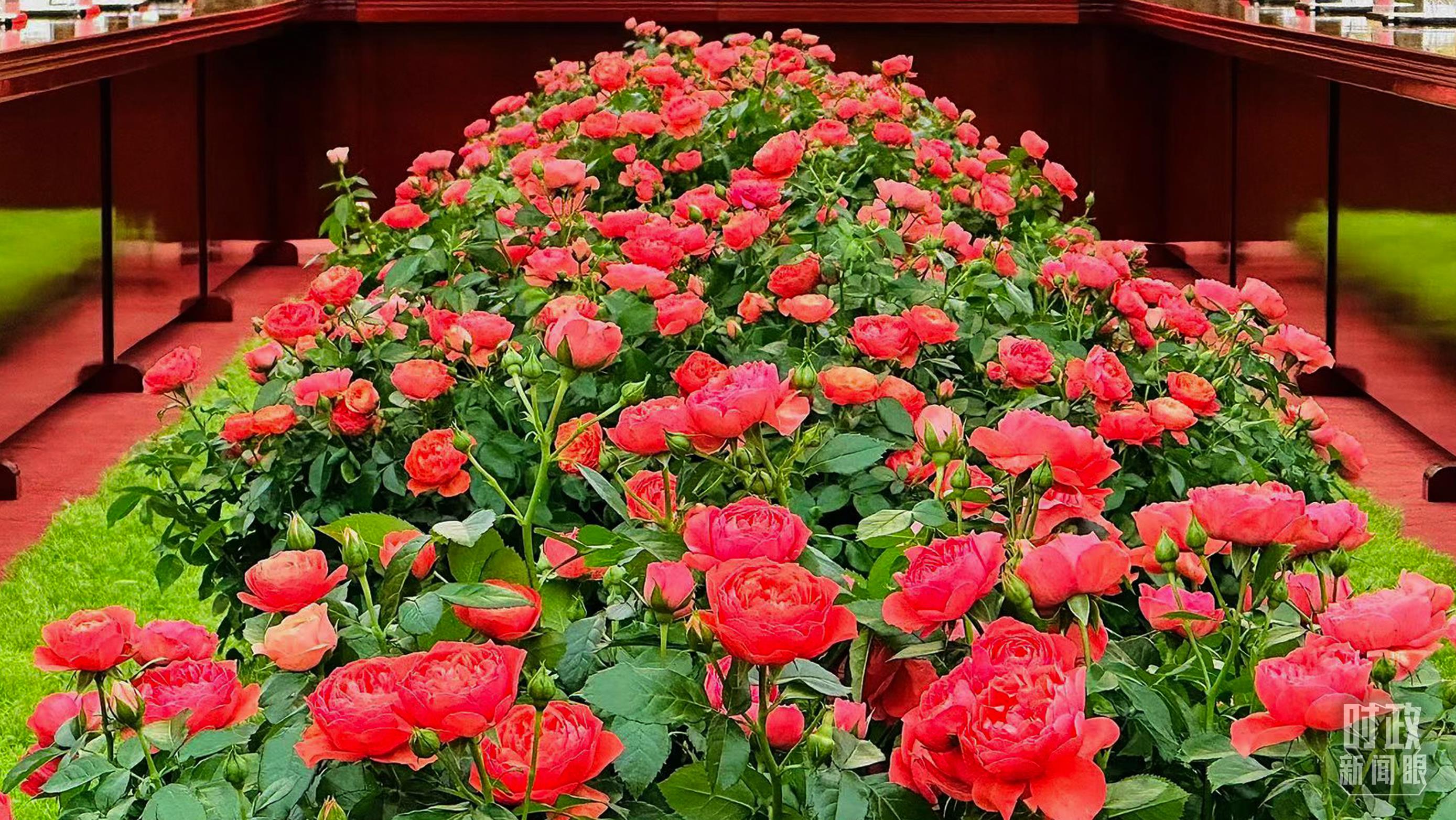 東(dong) 大廳會(hui) 談桌中間擺放的紅果汁月季,象征著蓬勃與(yu) 堅韌。(總台央視記者範一鳴拍攝)