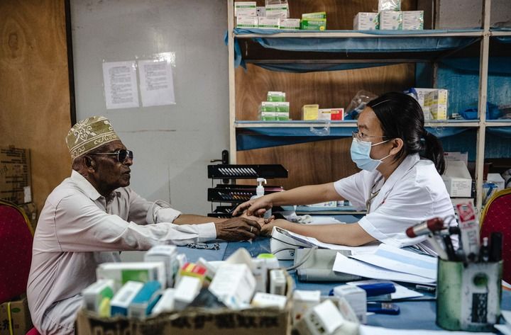 2024年1月11日,中國第15批援科摩羅醫療隊隊長潘春熹在位於(yu) 科摩羅首都莫羅尼的馬魯夫醫院內(nei) 為(wei) 患者看病。新華社記者 王冠森 攝