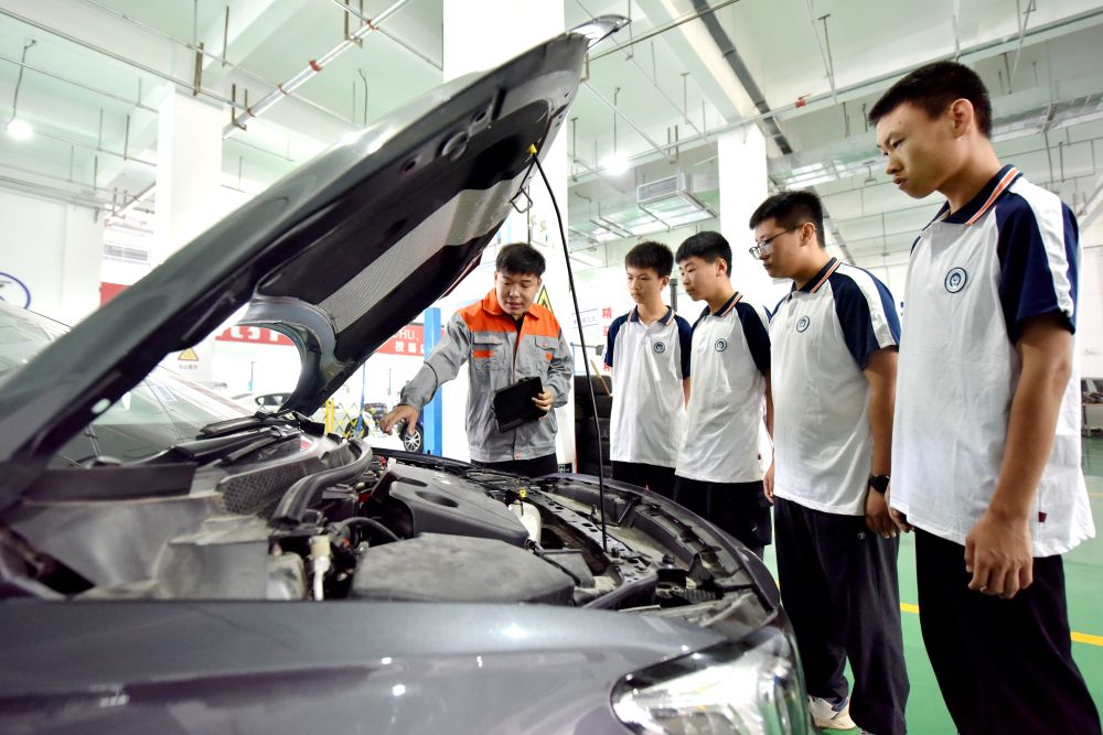 2024年6月7日,河北省邢台市威縣職業(ye) 技術教育中心教師在指導學生學習(xi) 汽車維修技術。新華社記者 王曉 攝
