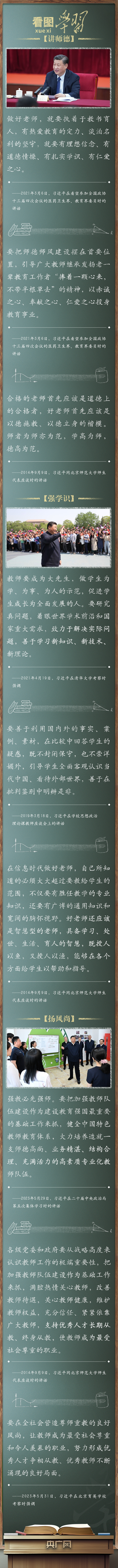 教育大計,教師為(wei) 本。黨(dang) 的十八大以來,以習(xi) 近平同誌為(wei) 核心的黨(dang) 中央堅持把教育擺在優(you) 先發展的戰略位置,推動新時代教育事業(ye) 取得曆史性成就、發生格局性變化。習(xi) 近平總書(shu) 記緊扣“培養(yang) 什麽(me) 人、怎樣培養(yang) 人、為(wei) 誰培養(yang) 人”這一教育的根本問題,對建設新時代高素質專(zhuan) 業(ye) 化教師隊伍作出一係列重要指示,激勵廣大教師立德修身、敬業(ye) 立學,強調要在全黨(dang) 全社會(hui) 弘揚尊師重教的社會(hui) 風尚。在第四十個(ge) 教師節到來之際,讓我們(men) 一起牢記並踐行總書(shu) 記的殷殷囑托!