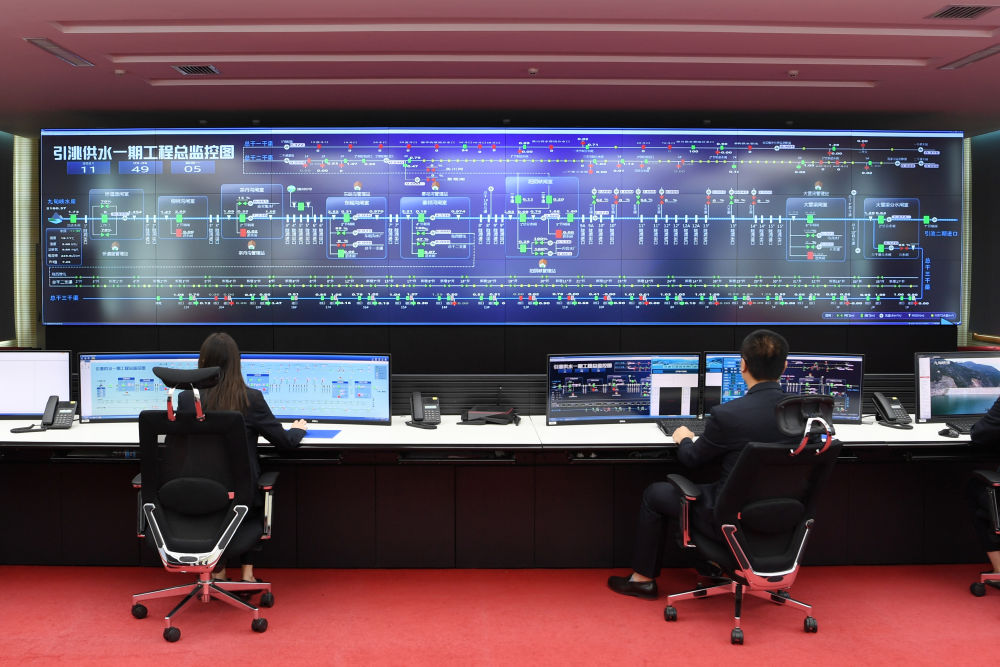 這是2021年9月6日在甘肅省引洮工程水資源利用中心調度中心拍攝的引洮供水一期工程調度現場。 新華社記者 範培珅 攝