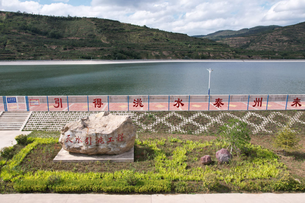 這是近日在天水市秦州區拍攝的天水市城區引洮供水工程楊家灣調蓄水池(無人機照片)。新華社記者 範培珅 攝