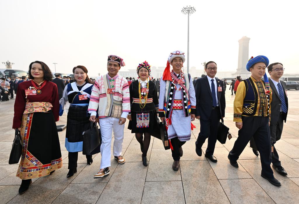 2023年3月5日,第十四屆全國人民代表大會(hui) 第一次會(hui) 議在北京人民大會(hui) 堂開幕。這是全國人大代表走向會(hui) 場。 新華社記者 陳益宸 攝