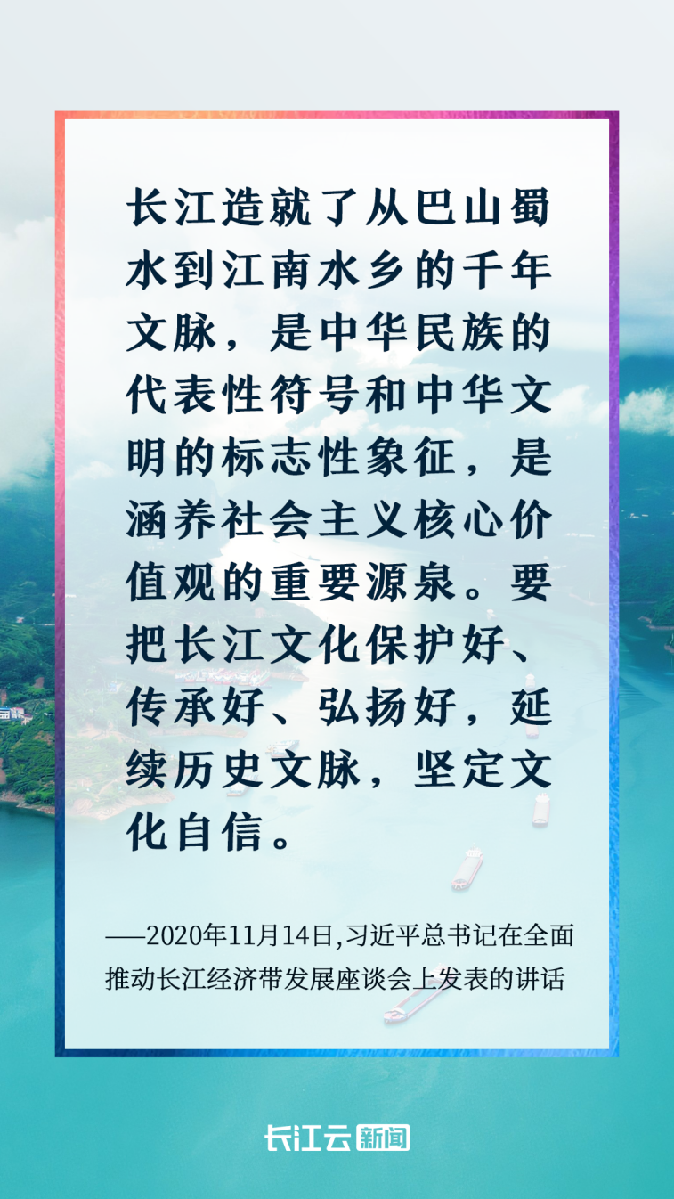 長江之水萬(wan) 古奔流,千年文脈生生不息。黨(dang) 的十八大以來,習(xi) 近平總書(shu) 記高度重視長江文化保護傳(chuan) 承弘揚,先後發表一係列重要講話,作出一係列重要指示批示,強調“要把長江文化保護好、傳(chuan) 承好、弘揚好,延續曆史文脈,堅定文化自信”。