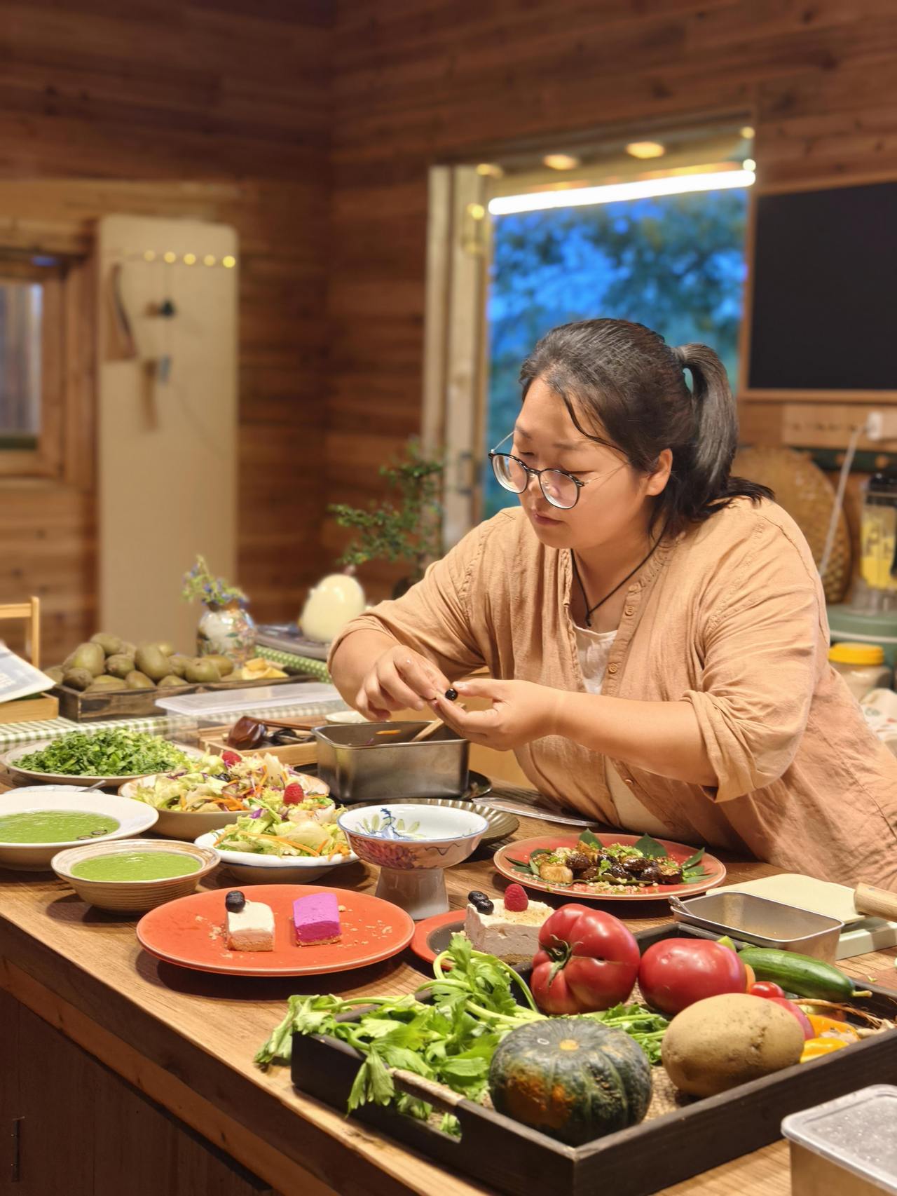 青年創客封玲在南瓜家森林廚房製作菜品。受訪者供圖