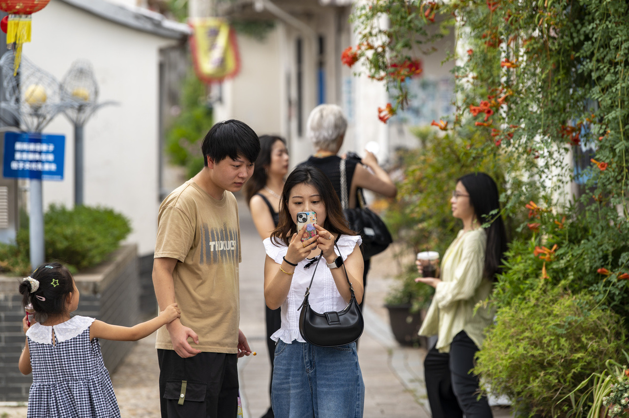 9月15日,李祖村的幽靜小巷裏,各地遊客在打卡拍照,休閑度假。拍友 胡肖飛 攝
