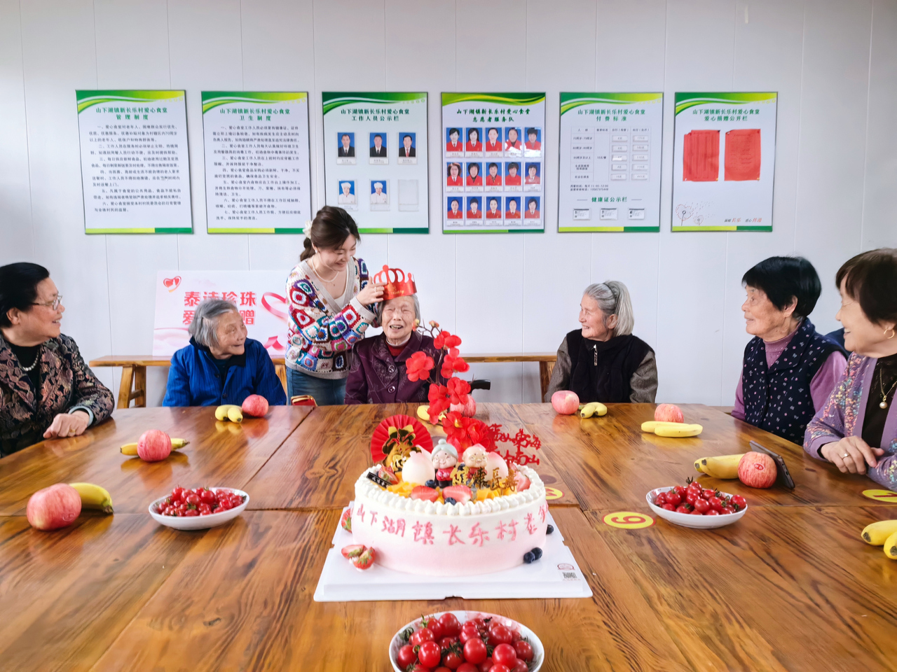 諸暨市山下湖鎮新長樂(le) 村“愛心食堂”開展集體(ti) 生日會(hui) 活動。諸暨市委宣傳(chuan) 部供圖