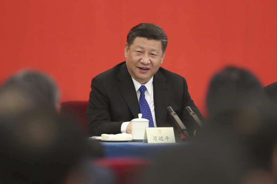 2018年3月4日下午,中共中央總書(shu) 記、國家主席、中央軍(jun) 委主席習(xi) 近平看望參加全國政協十三屆一次會(hui) 議的民盟、致公黨(dang) 、無黨(dang) 派人士、僑(qiao) 聯界委員,並參加聯組會(hui) ,聽取意見和建議。 新華社發(盛佳鵬 攝)