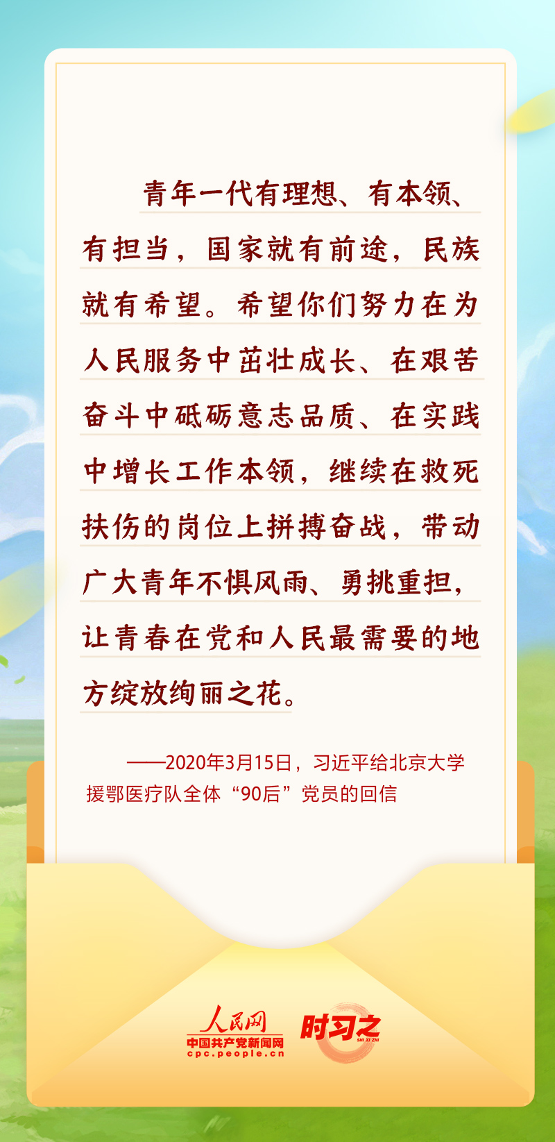 青年興(xing) 則國家興(xing) ,青年強則國家強。習(xi) 近平總書(shu) 記時常通過書(shu) 信與(yu) 廣大青年交流,勉勵他們(men) 向下紮根、向上成長,為(wei) 青年在奮鬥前行的道路上點亮航標、指引航程。
