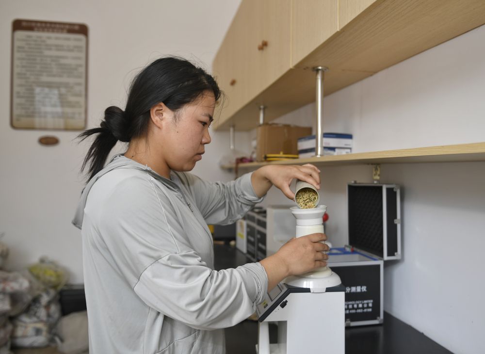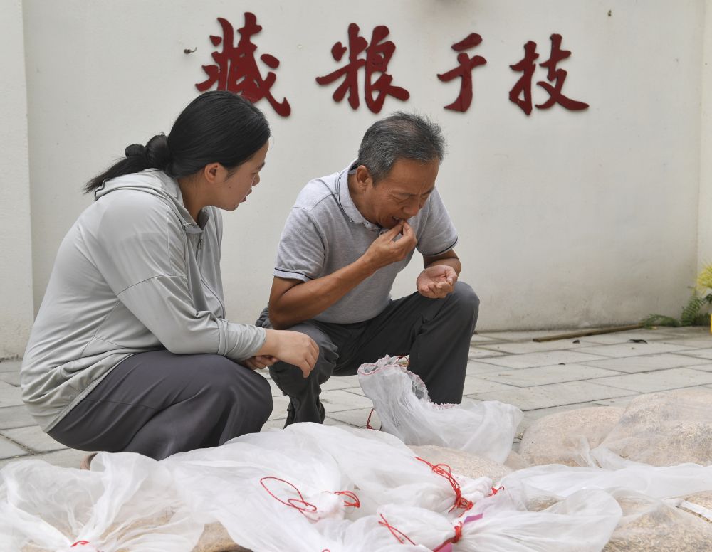 2024年8月22日,在永豐(feng) 村水稻科技小院,長期駐守在此的四川農(nong) 業(ye) 大學學生測量稻穀含水量。