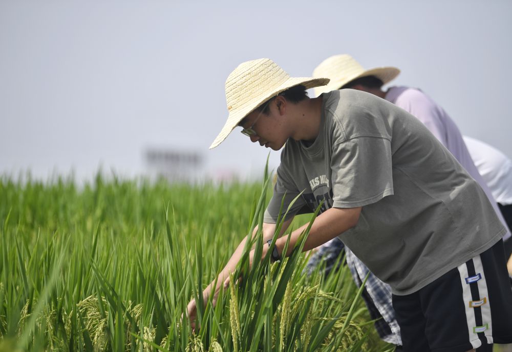 2024年7月26日,長期在永豐(feng) 村高標準農(nong) 田駐守的四川農(nong) 業(ye) 大學學生在田間觀察水稻生長情況。
