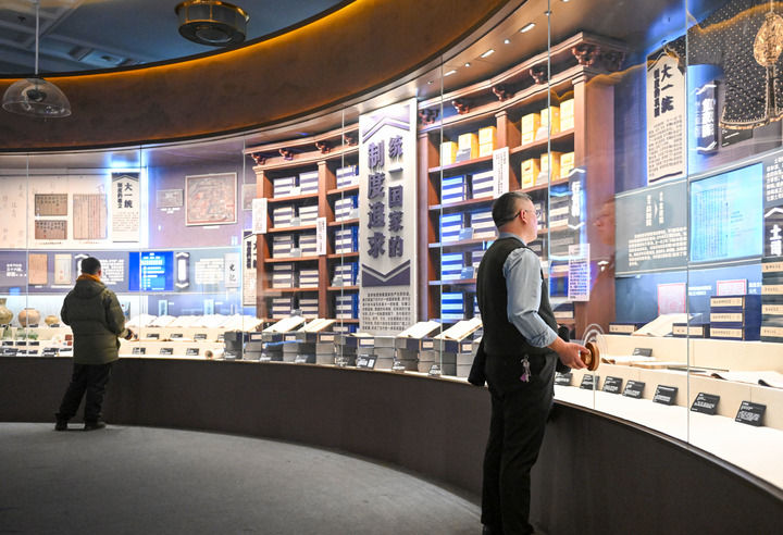 2023年12月23日,參觀者在北京民族文化宮參觀鑄牢中華民族共同體(ti) 意識文物古籍展。新華社記者 郝建偉(wei) 攝