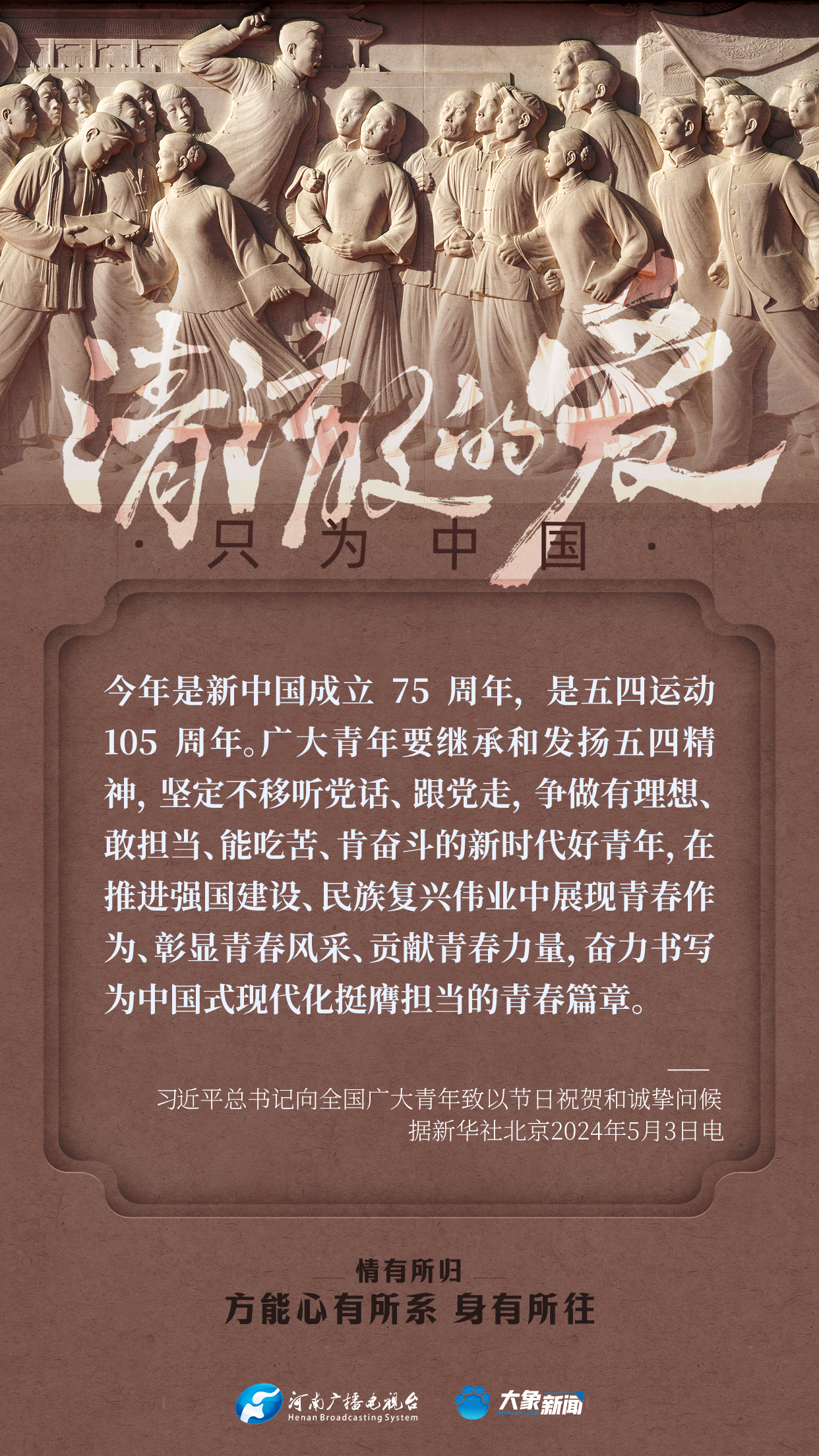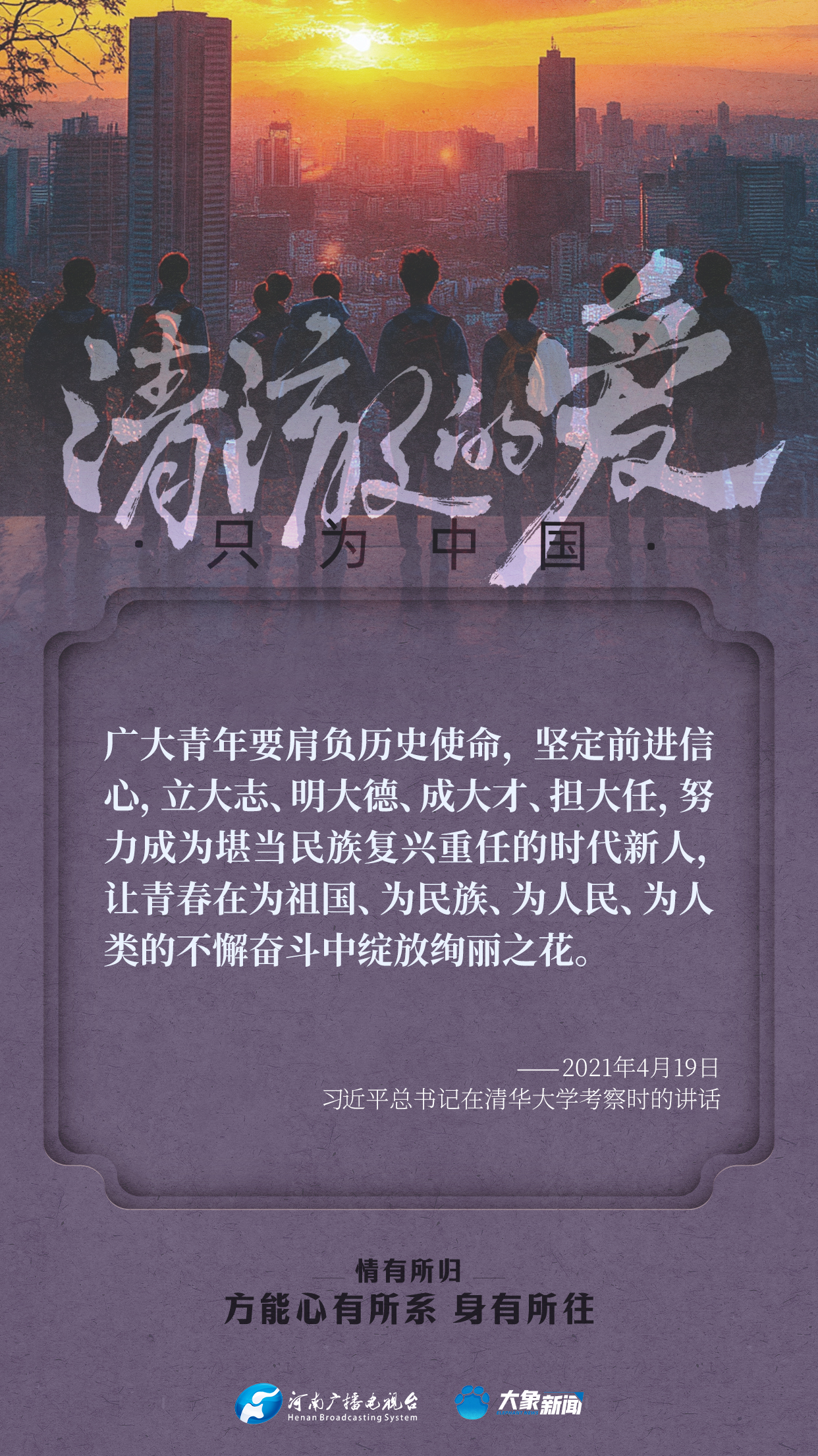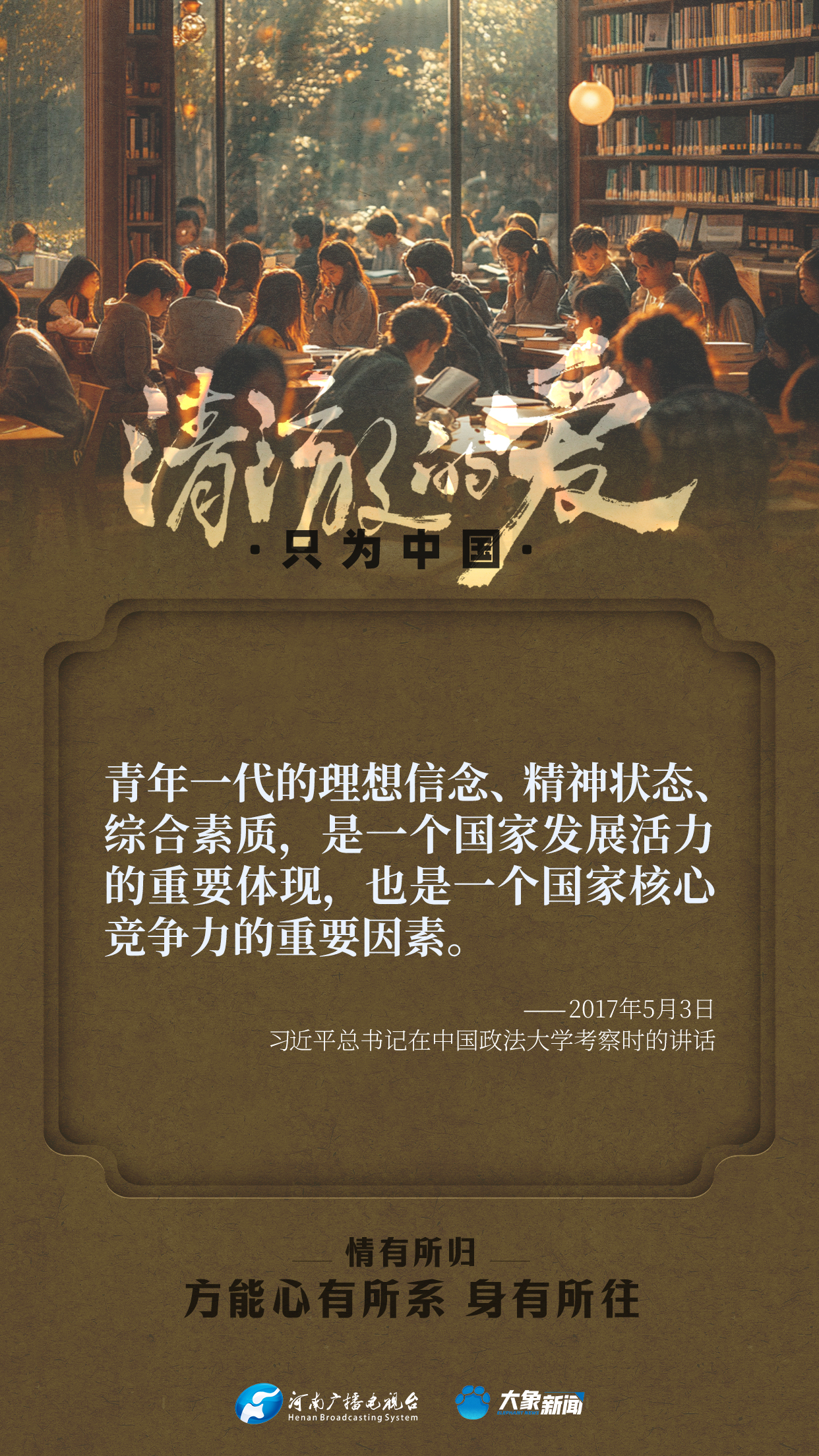 習(xi) 近平總書(shu) 記對廣大青年寄予厚望。黨(dang) 的十八大以來,他多次來到青年中間,同大家談人生、話理想,鼓勵青年人心係祖國,誌存高遠,腳踏實地,在奮鬥中創造精彩人生,為(wei) 祖國和人民貢獻青春和力量。